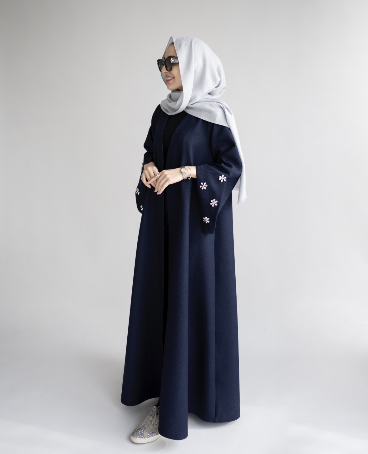 مانتو ژاکارد جواهر دوزی سورمه ای